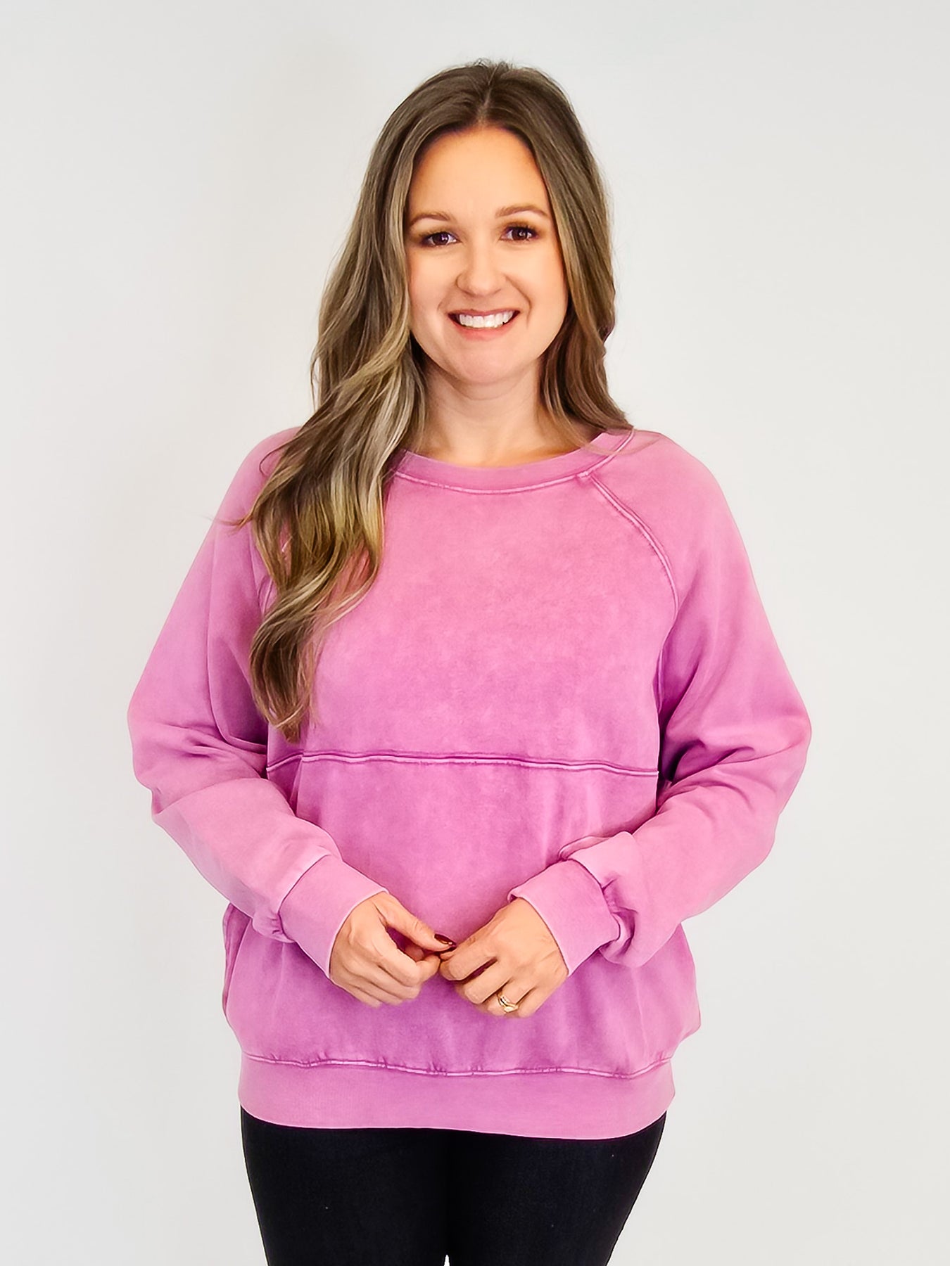 LONG SLEEVE MINERAL WASHED TERRY PULLOVER - ORCHID