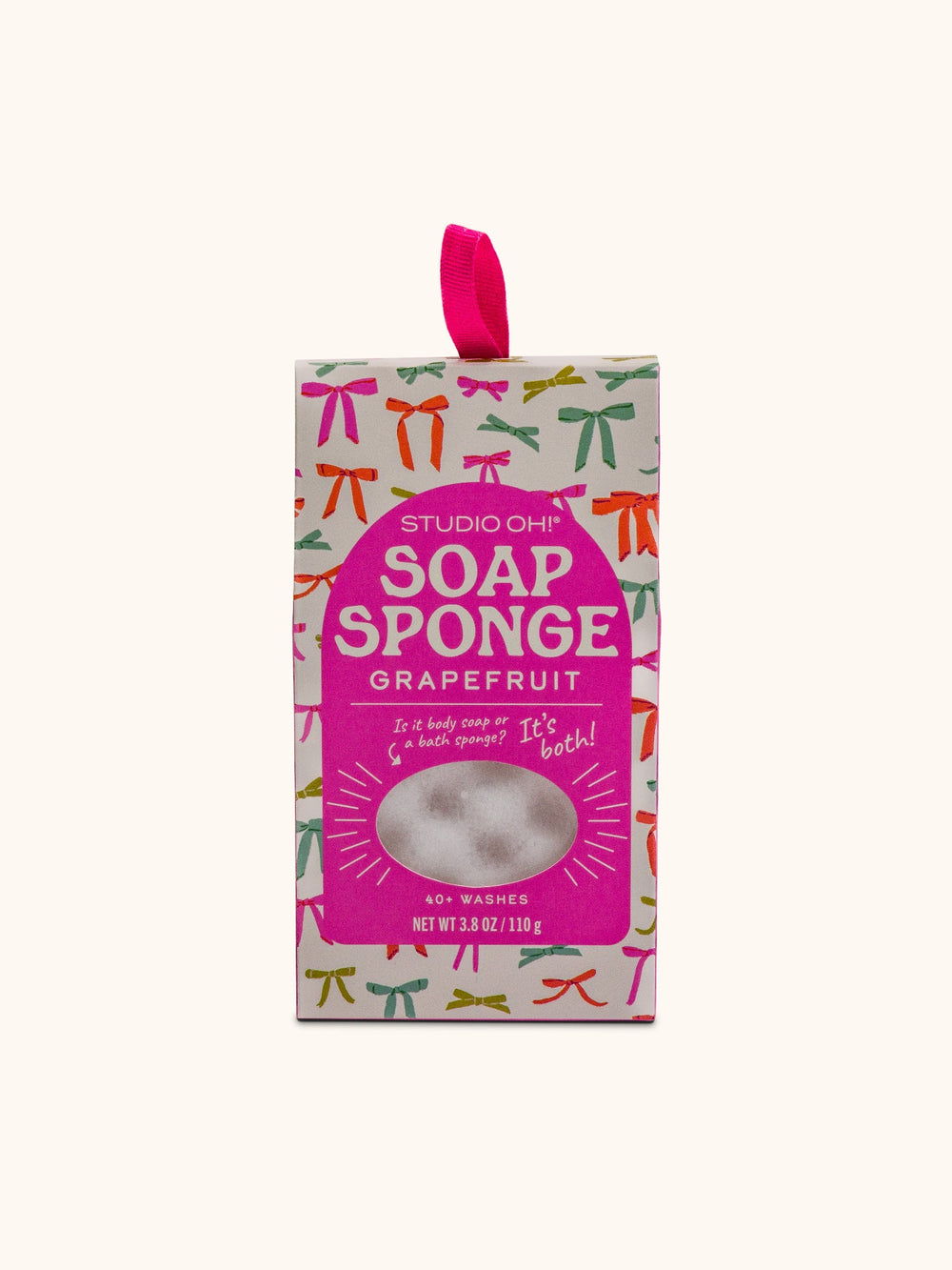 Is it a soapy sponge or a spongey soap? It's both! This giftable soap-infused sponge is a delightful and convenient addition to any bath or shower. Simply add water and whip up a luxurious lather while you gently cleanse and exfoliate. Each Soap Sponge lasts for 40-plus washes and comes with a tasteful grosgrain ribbon for hanging.