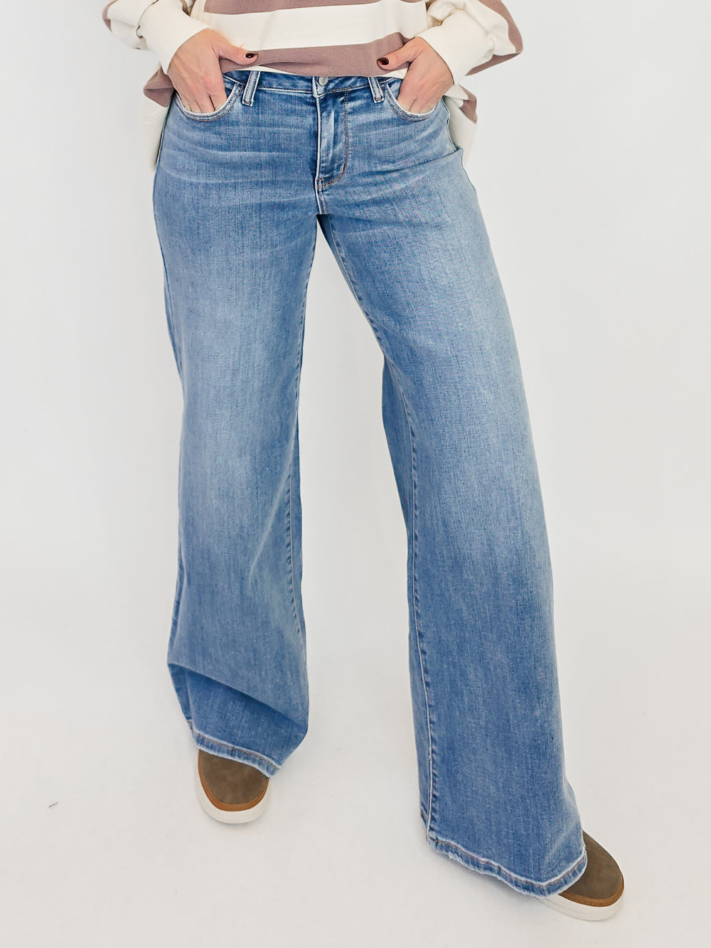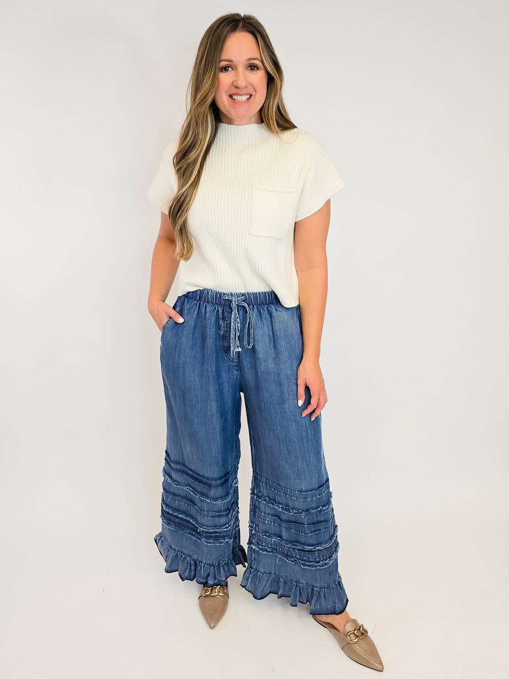 Upgrade your wardrobe with the latest fashion trends in bottoms at Brianne's Boutique. From sleek and sophisticated to casual and comfy, our bottoms collection has something for work and play. Shop our selection of jeans, skirts, skorts, shorts, and more to find the perfect fit for your unique sense of style. Elevate your look today with our trendy and versatile bottoms collection.