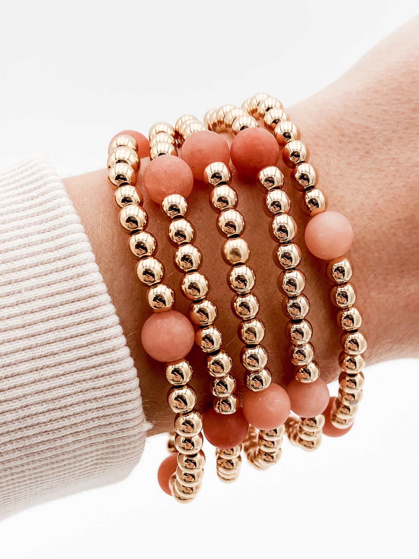 S/5 ROUND STONE STRETCH BRACELETS - GOLD/PINK