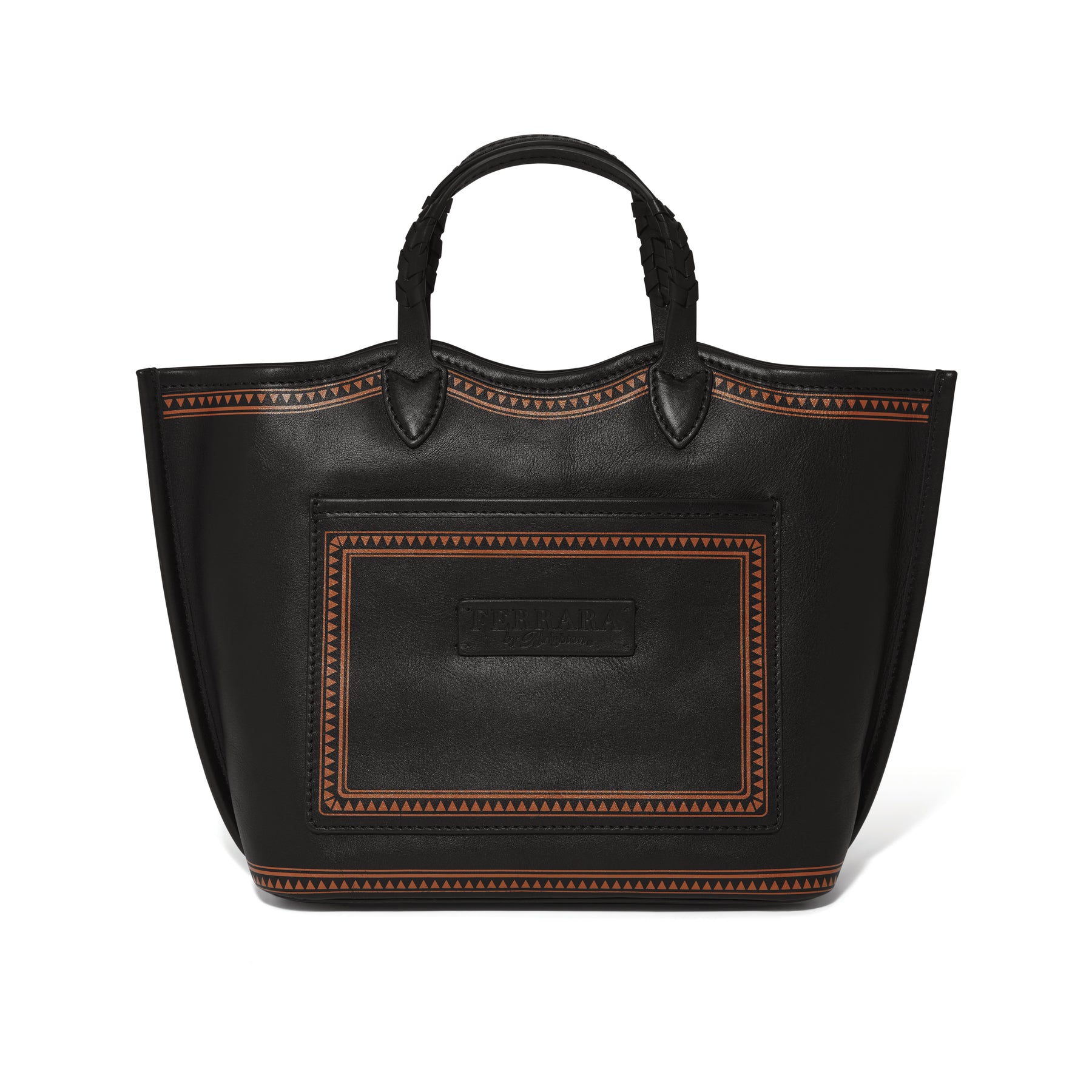 The La Bellezza Collection continues to be inspired by the diamond shape patterns found on facades of Venice, Italy Gothic style architecture. The lasered parts of the mini tote are digitally printed with a matching leather color behind the front panel.