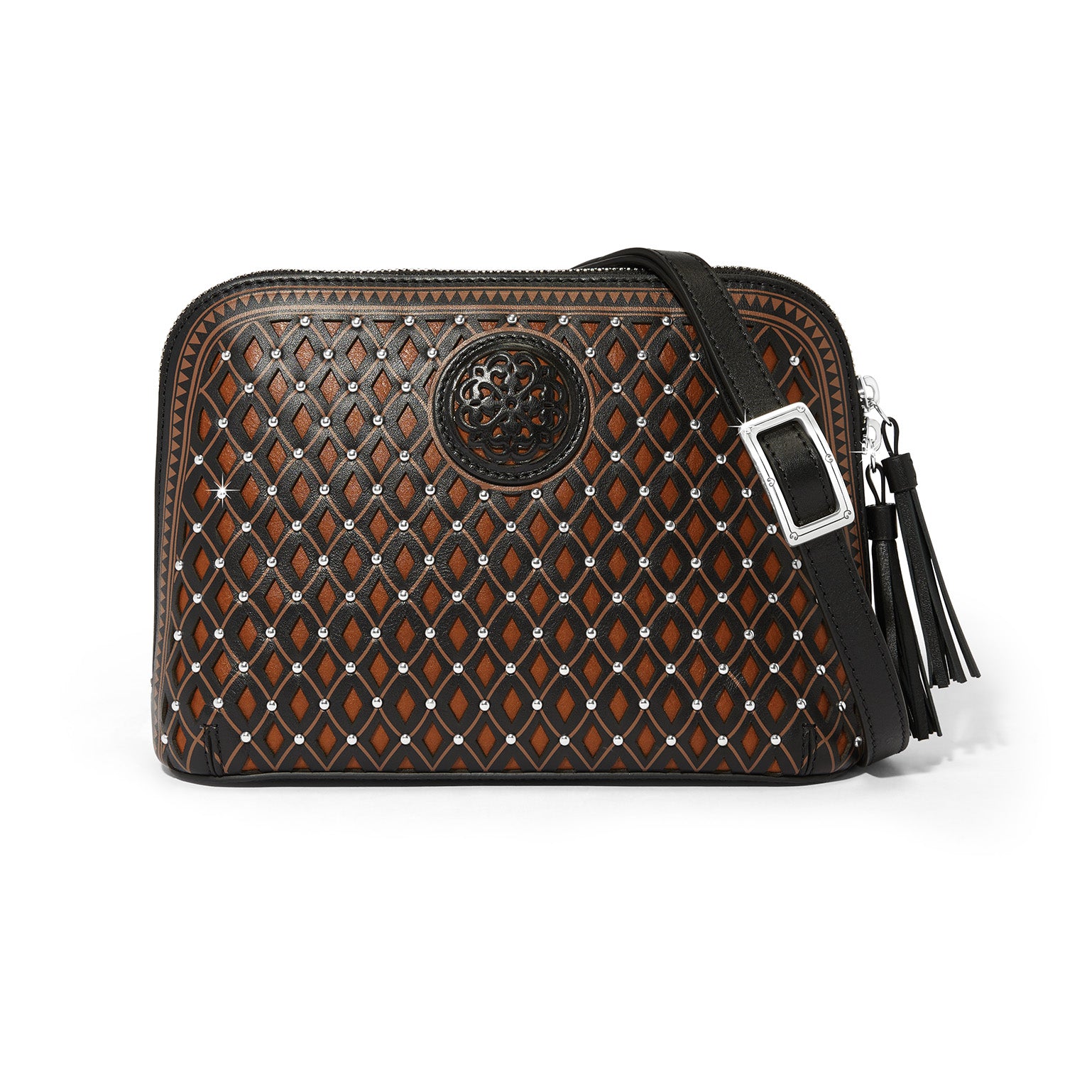 Lasered, die-cut, hand-laced and heavily stitched, this gorgeous equestrian-inspired fine leather bag in a chic domed silhouette is filled with crafted details.