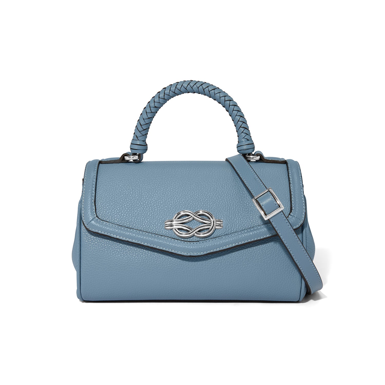 Softly structured, this handheld ladylike bag blends timeless fashion with modern versatility. The bag flap is trimmed with a bumped appliqué for a clean, modern look and its handle is intricately laced with a Herringbone pattern. Tate captures the essence of modern femininity with a nod to traditional glamour, featuring both style and craftsmanship.