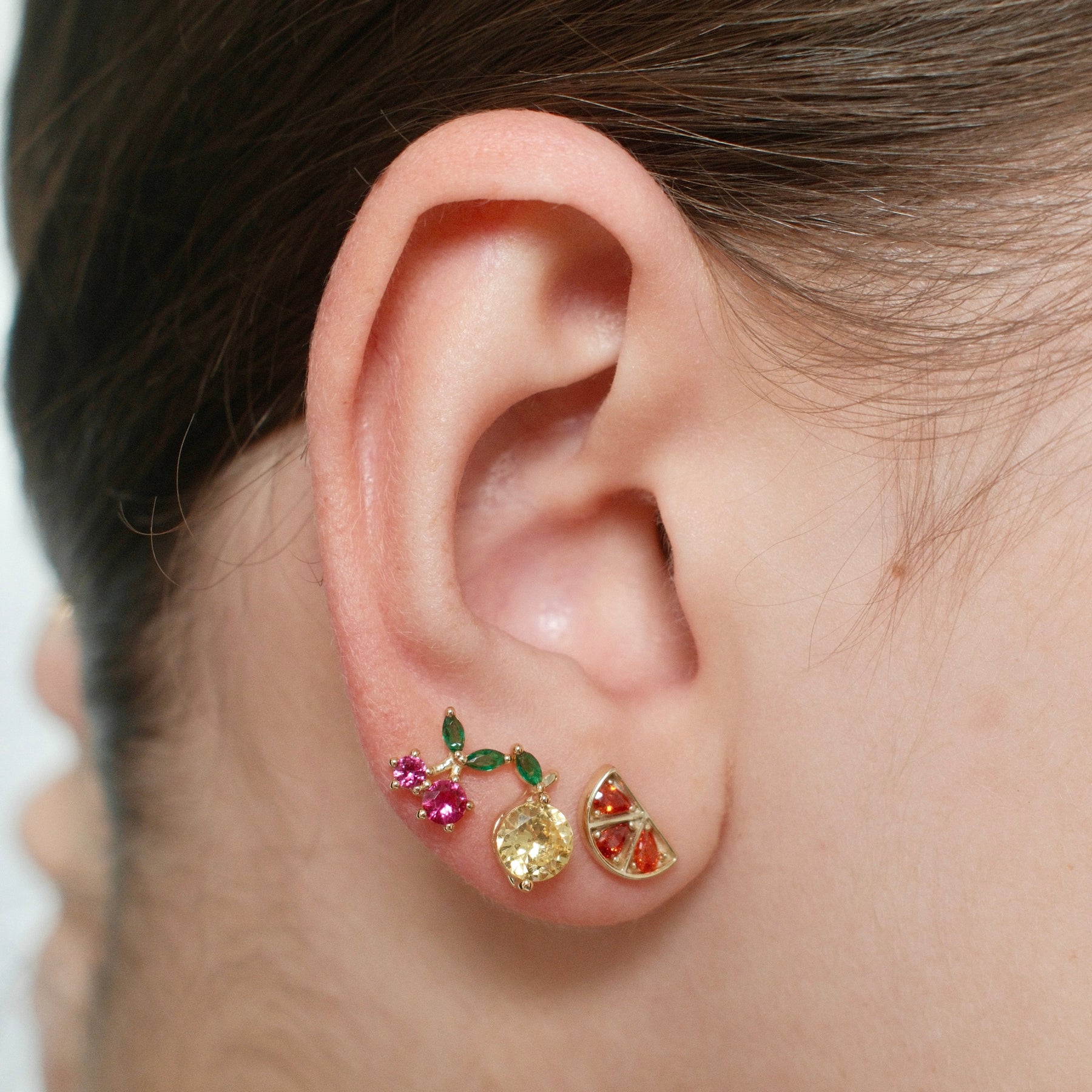 Stackable earrings that encapsulate summer, these colorful little earrings add playfulness to your ear party.