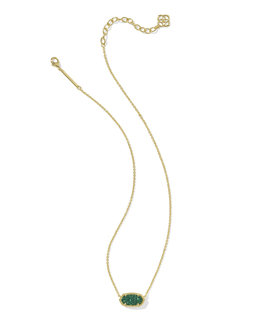 KENDRA SCOTT ELISA SHORT PENDANT NECKLACE - GOLD EMERALD DRUSY