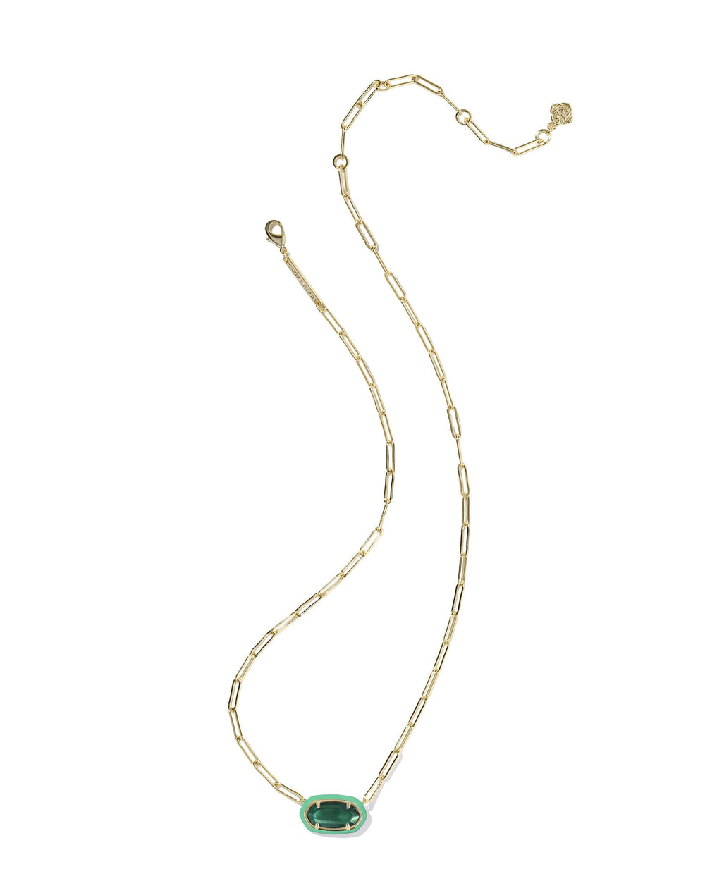 KENDRA SCOTT ELISA ENAMEL FRAME PAPERCLIP NECKLACE - GOLD EMERALD ILLUSION