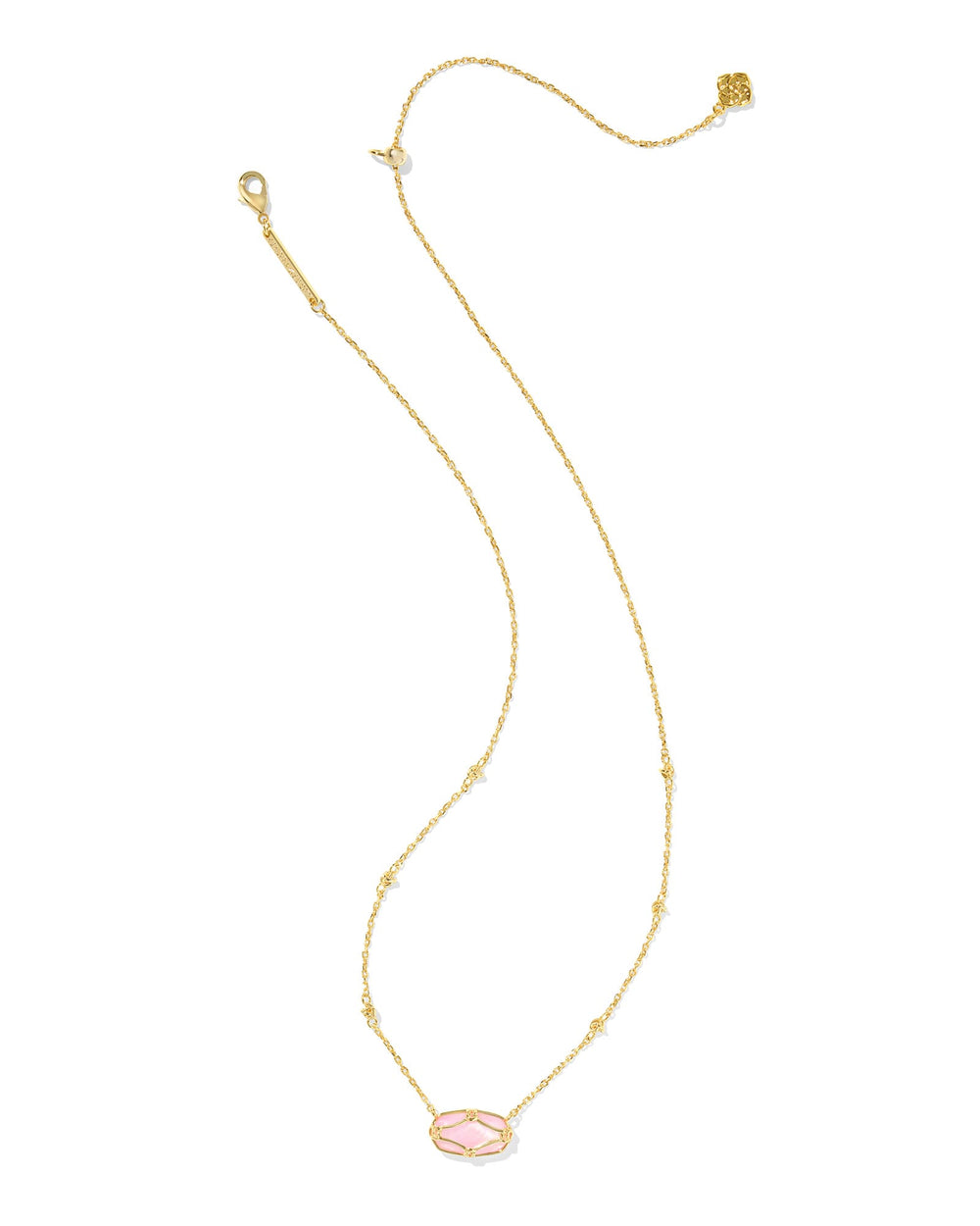 KENDRA SCOTT ELISA LATTICE FRAME SHORT PENDANT NECKLACE - GOLD BLUSH IVORY MOP