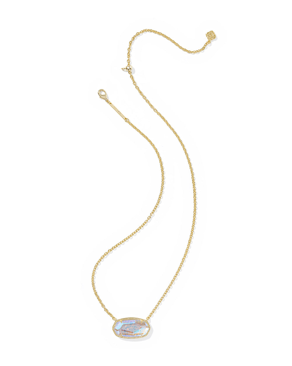 Bigger, bolder, and more beautiful than ever: meet the Elisa Statement Gold Dichroic Glass Short Pendant Necklace. With a size inspired by our archival Dylan Pendant Necklace, this Elisa is a maximalist take on our bestselling icon, featuring gorgeous stone faceting and our signature hoofprint detailing. Try pairing her with an Elisa Short Pendant Necklace or a Mini Elisa Short Satellite Pendant Necklace in a coordinating color for a look that’s all in the family.