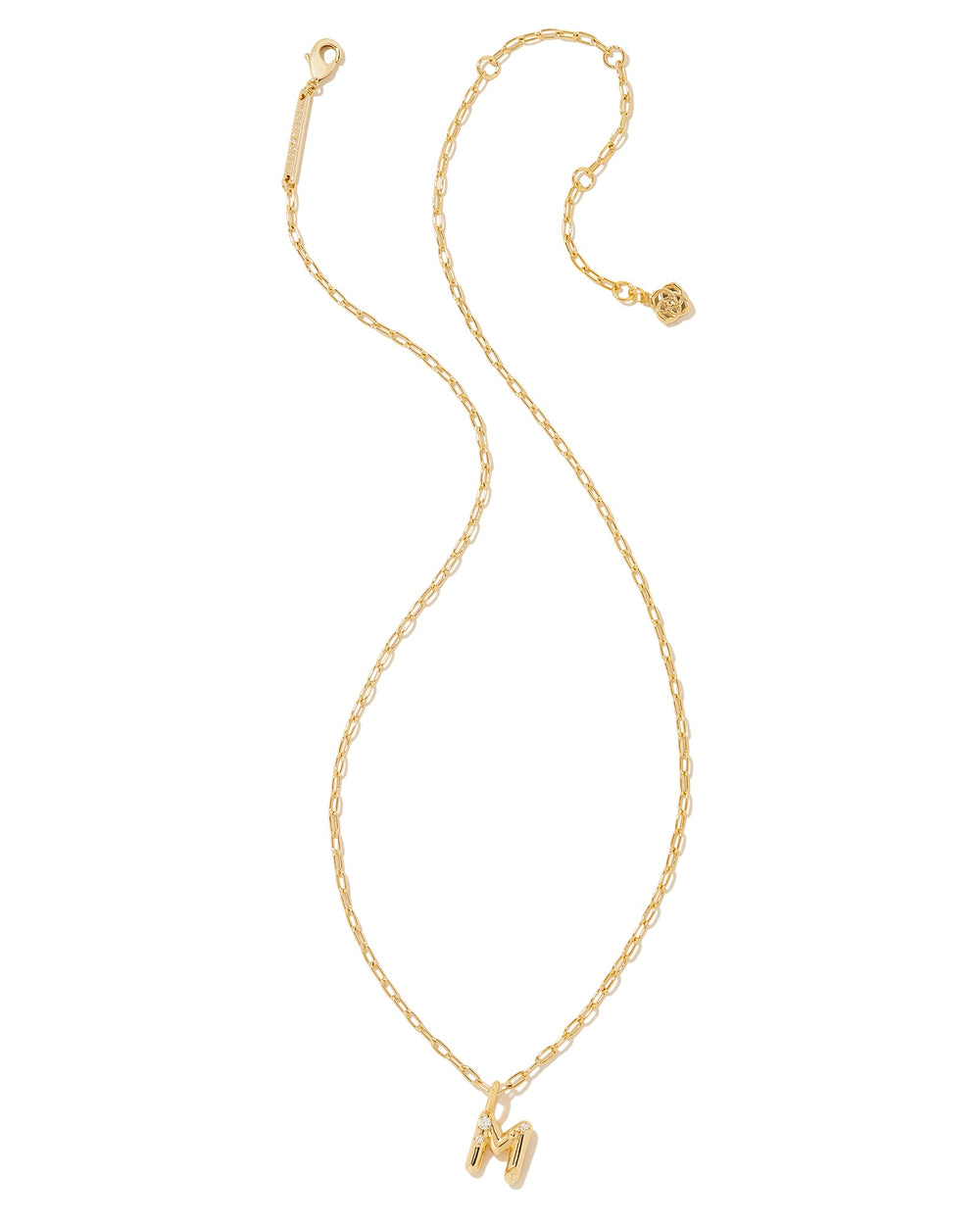 KENDRA SCOTT CRYSTAL LETTER M SHORT PENDANT INITIAL NECKLACE - GOLD WHITE CZ