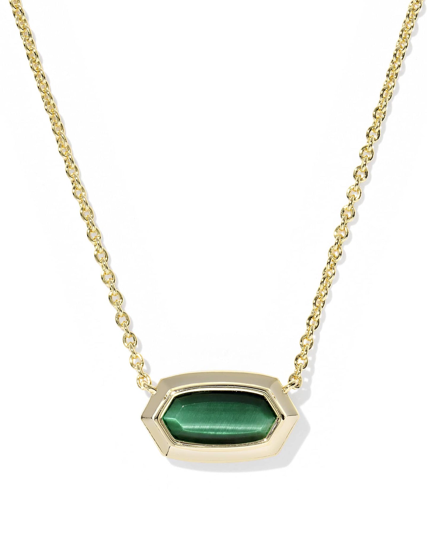 KENDRA SCOTT ELISA BEZEL SHORT PENDANT NECKLACE - GOLD GREEN TIGERS EYE