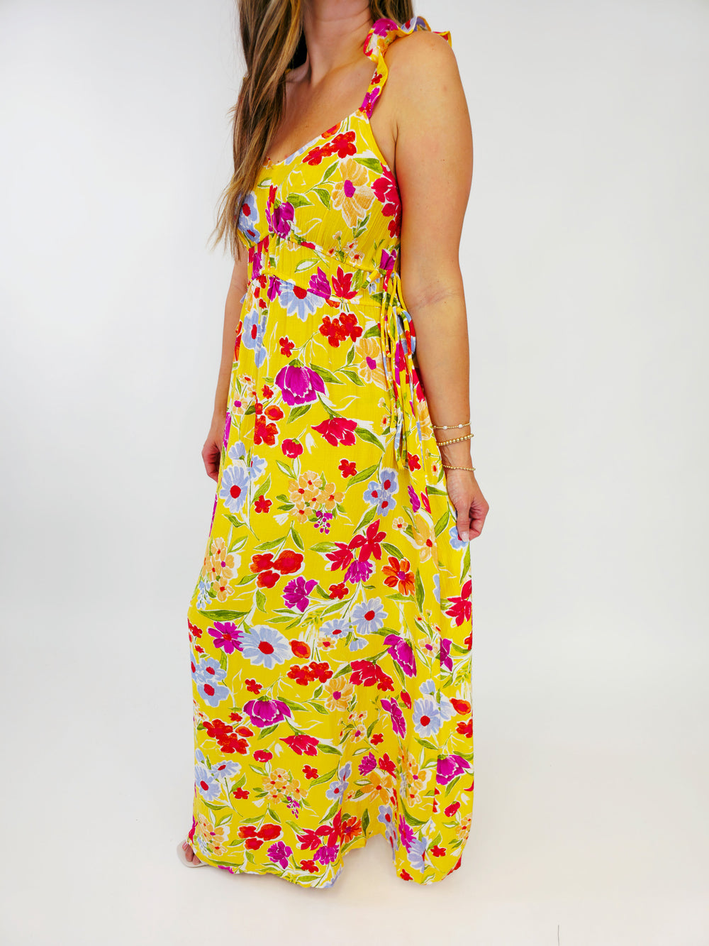 FLORAL PEACH BLOSSOM MAXI DRESS - SUNFLOWER
