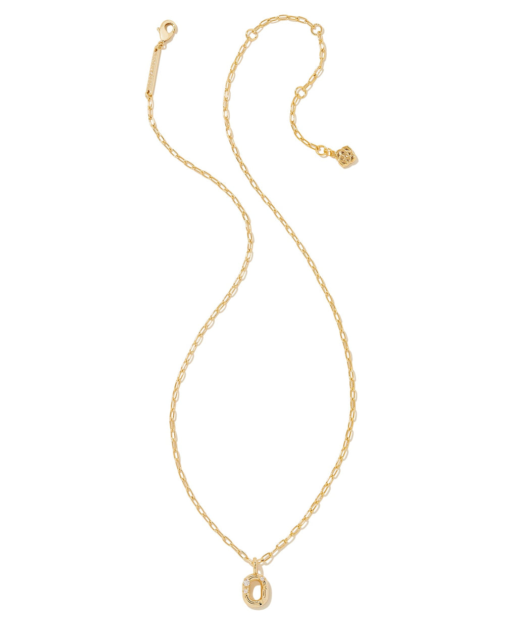 KENDRA SCOTT CRYSTAL LETTER O SHORT PENDANT INITIAL NECKLACE - GOLD WHITE CZ
