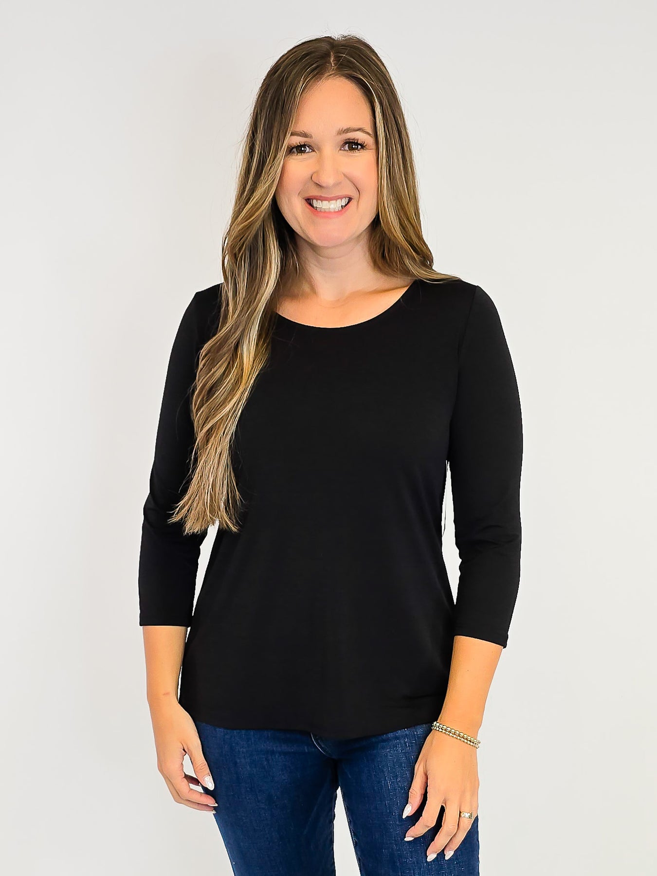 DEAR SCARLETT ROUND NECK 3/4 SLEEVE TOP - BLACK