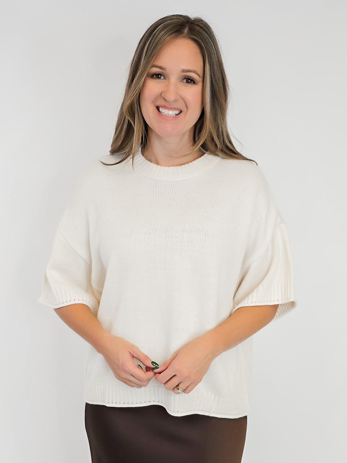 ELBOW SLEEVE BOXY SWEATER - BONE