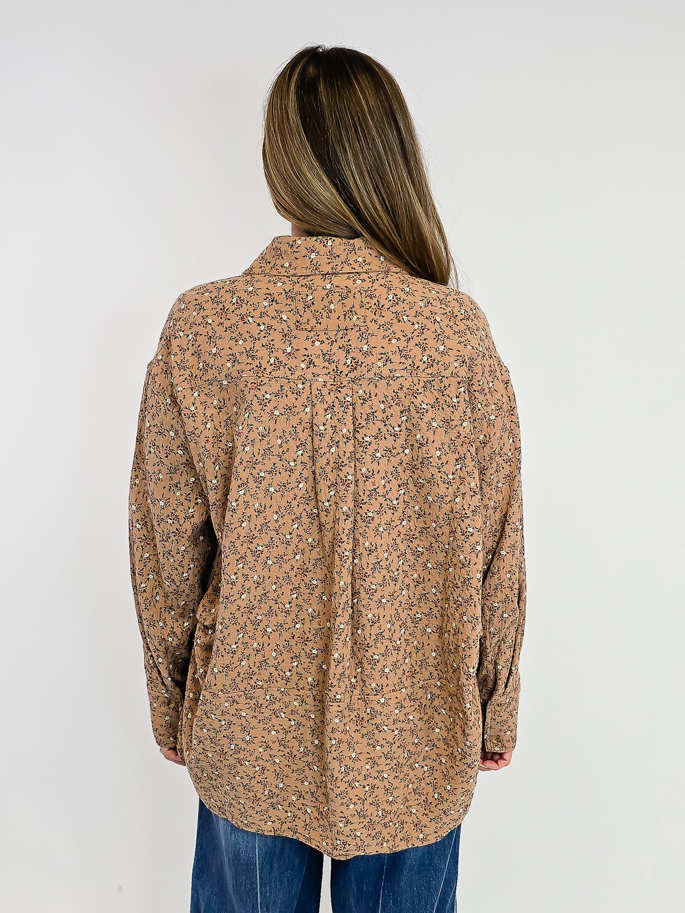 FLORAL PRINTED WASHED GAUZE SHIRT - ALMOND