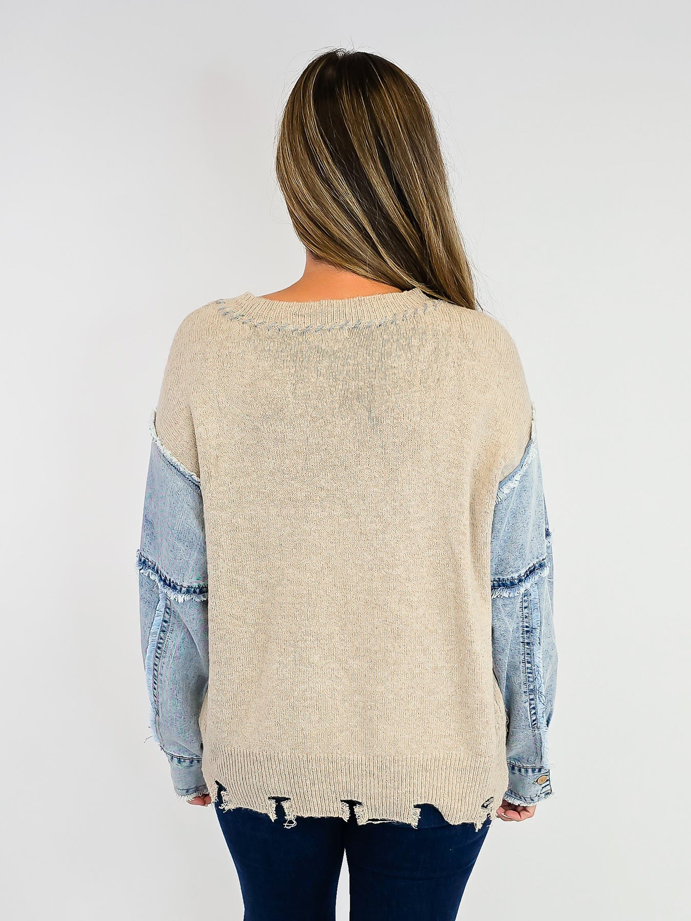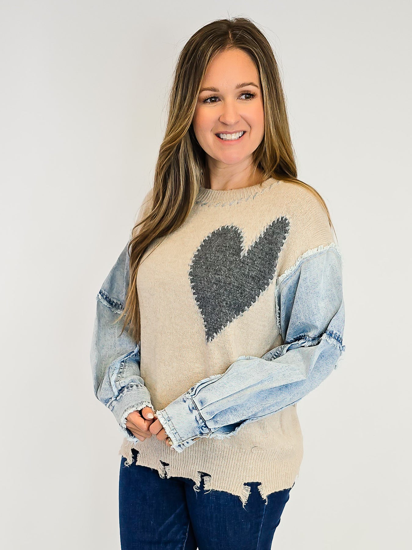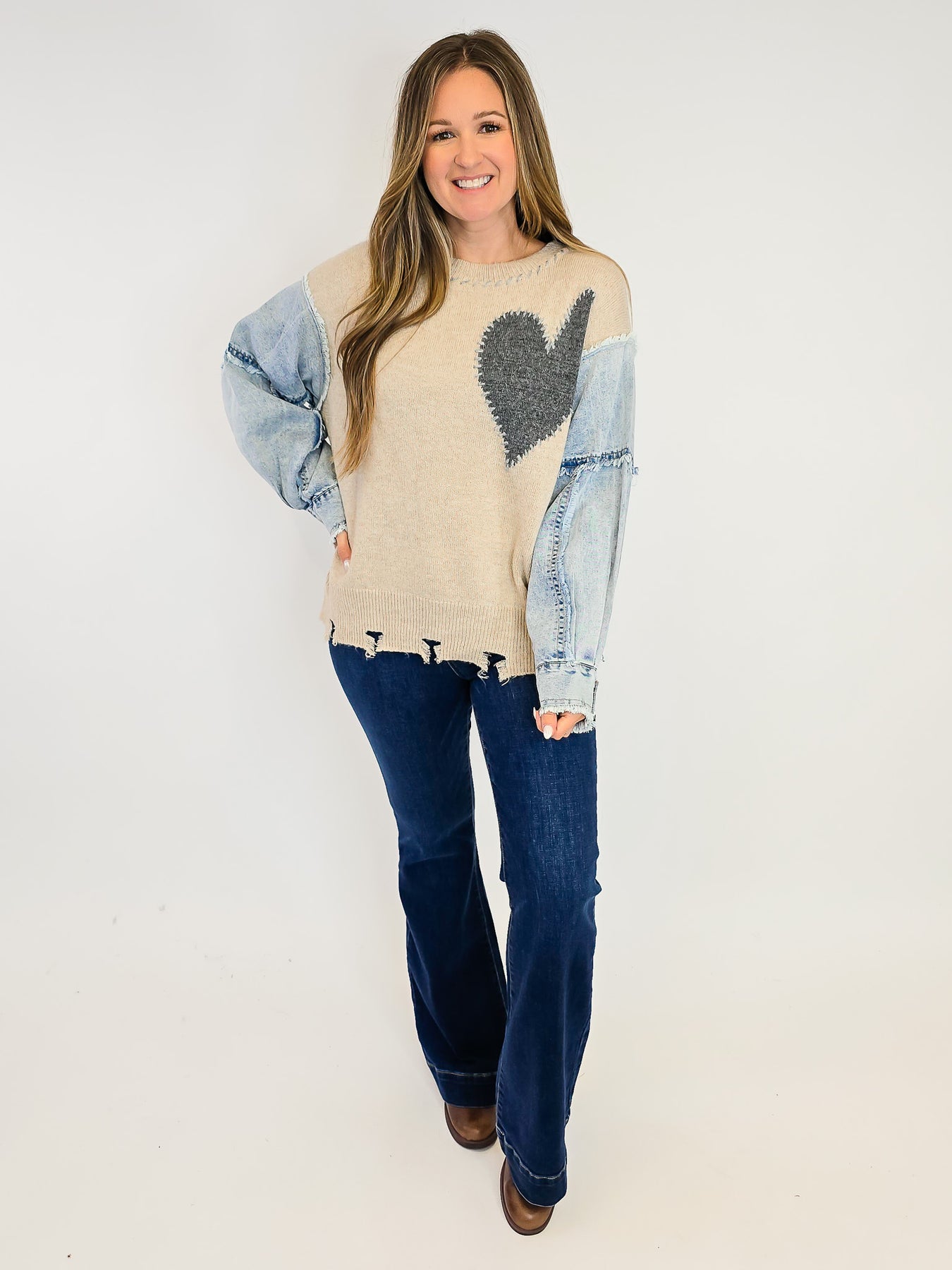HEART PATCH FRONT KNITTED SWEATER - OATMEAL