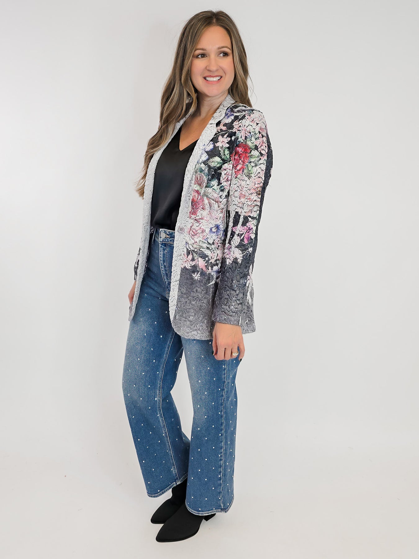 LACE & SEQUIN FLORAL BLAZER - CHARCOAL