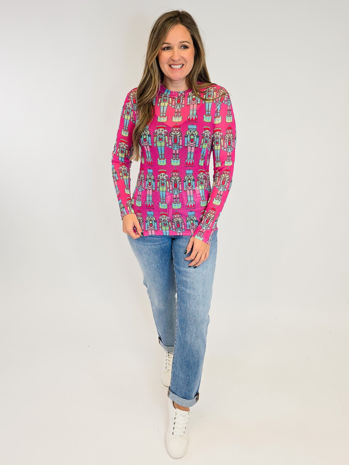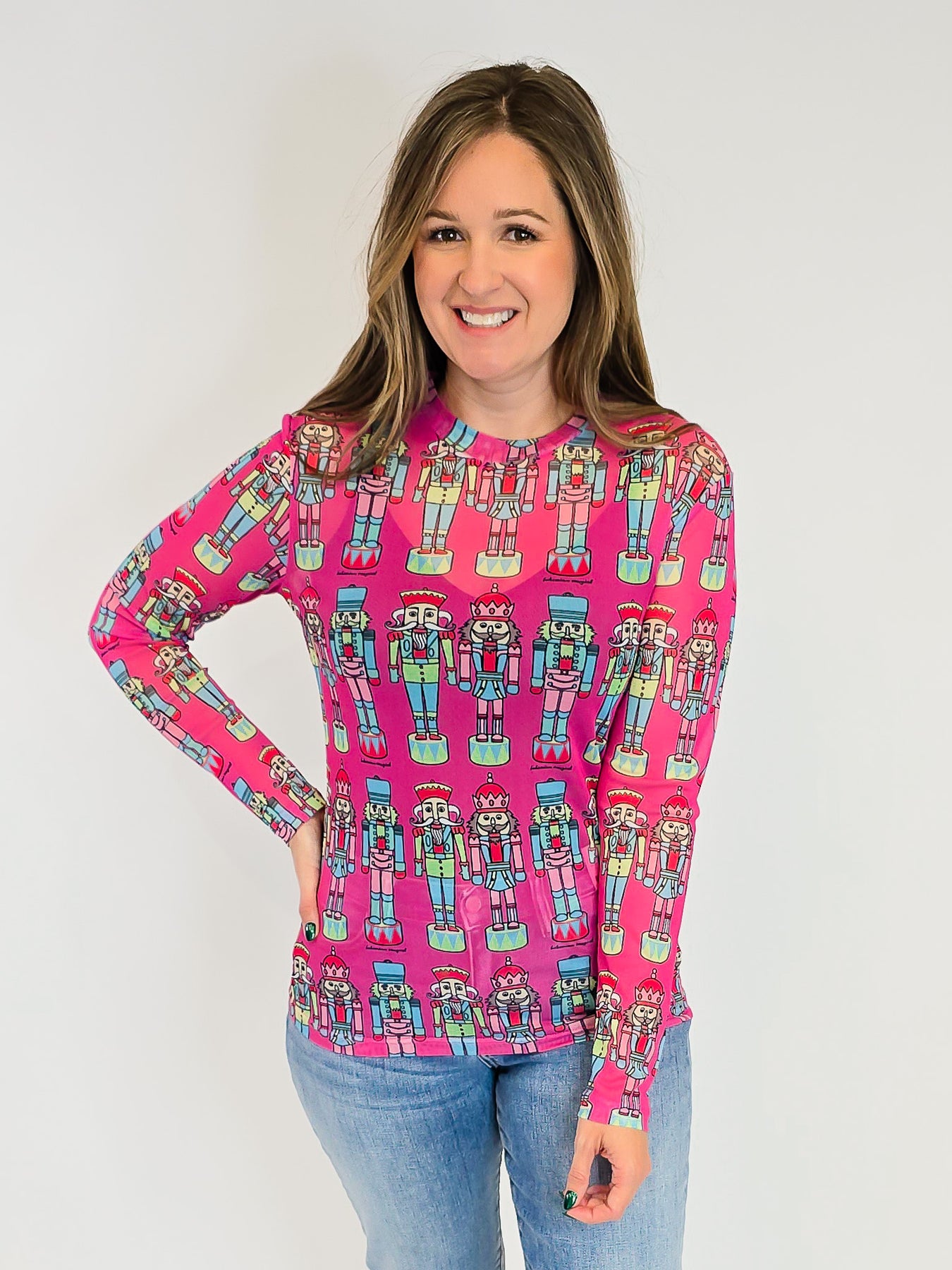 LONG SLEEVE MESH TOP - NUTCRACKER PINK