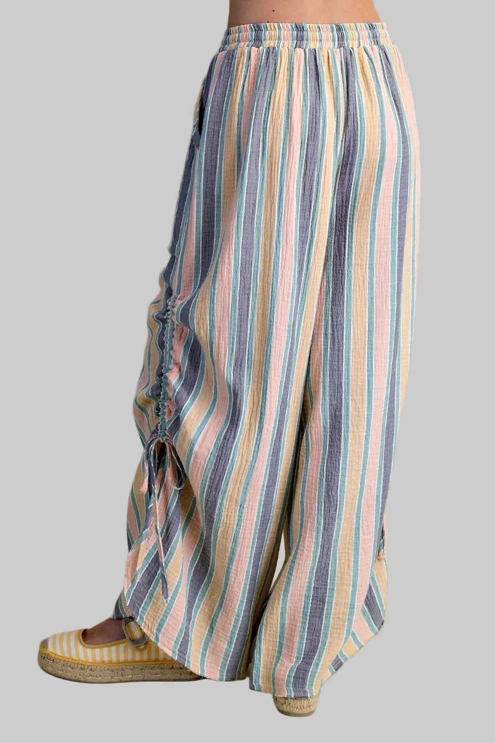 PRINTED COTTON GAUZE PANTS - PASTEL STRIPE