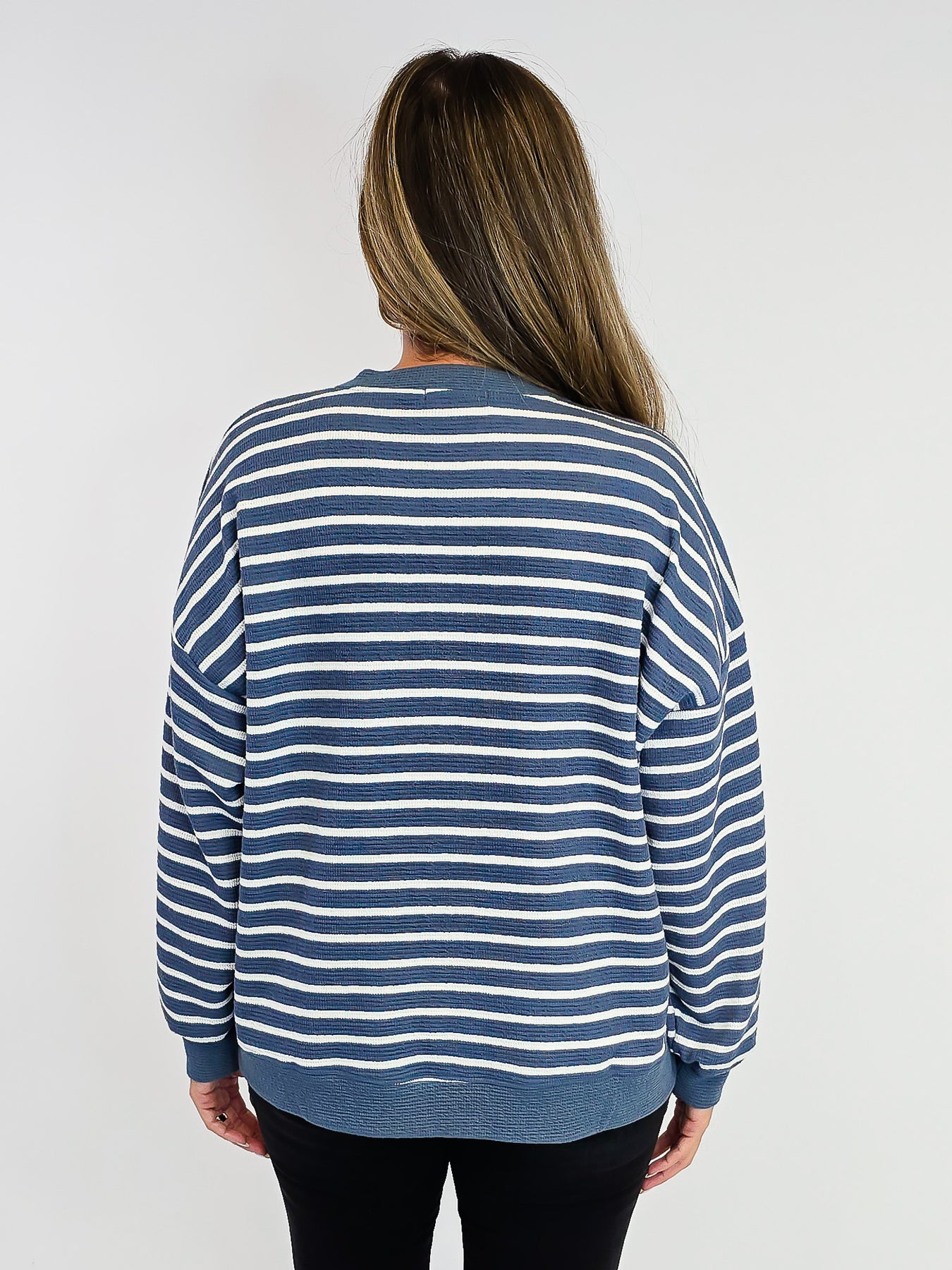 STRIPED CLOUDY KNIT L/S TOP - DENIM