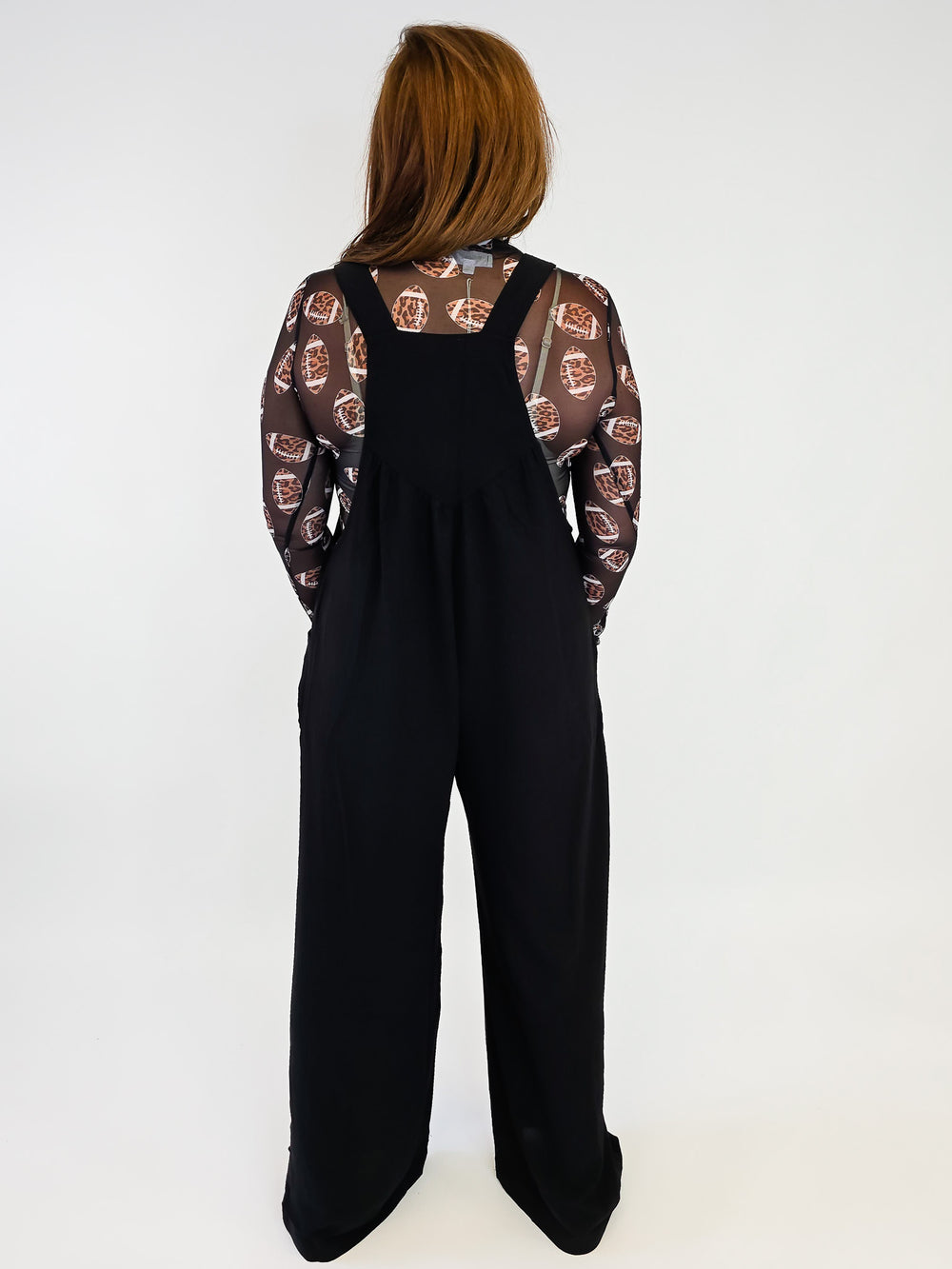 FLOWY POCKET JUMPSUIT W/ BUTTONS - BLACK