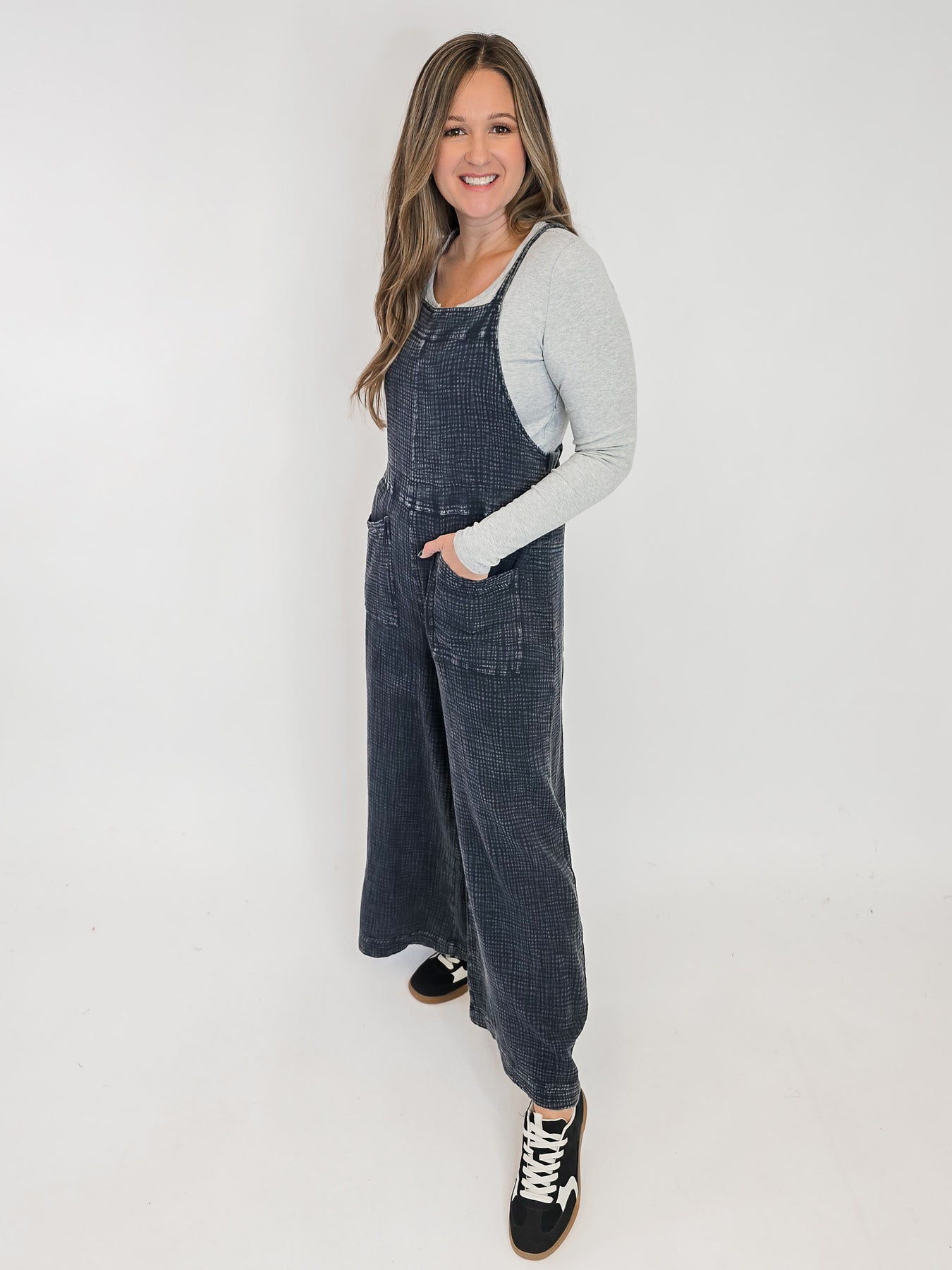 WASHED COTTON WIDE LEG JUMPSUIT - FADED DENIM