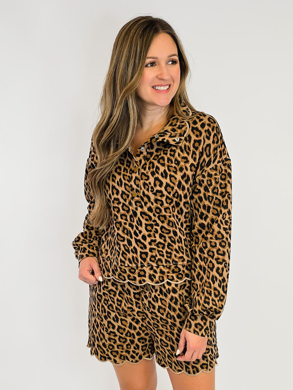LEOPARD PRINT SCALLOP SHORTS - BROWN