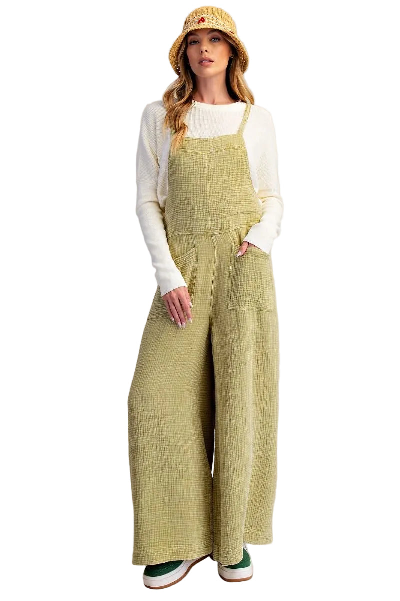 WASHED COTTON WIDE LEG JUMPSUIT - SAGE