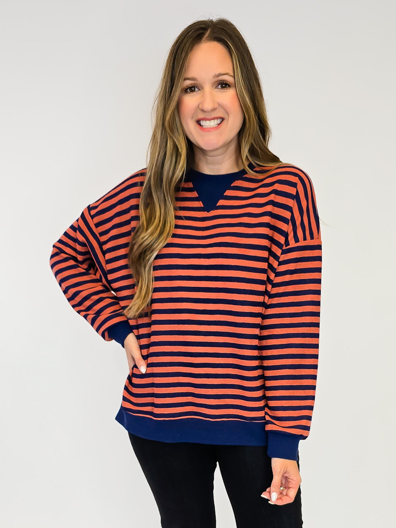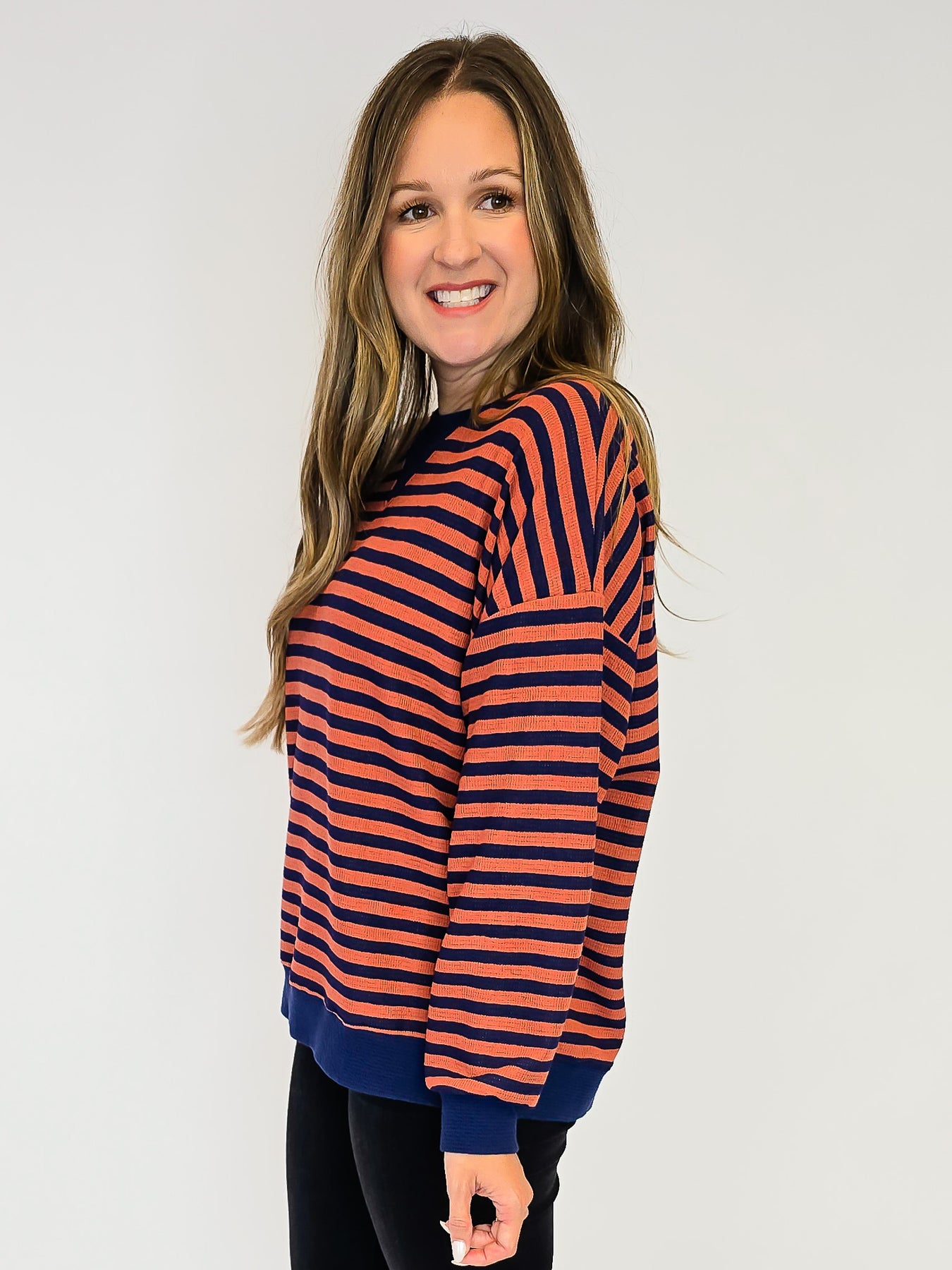 STRIPED CLOUDY KNIT L/S TOP - NAVY/MAUVE