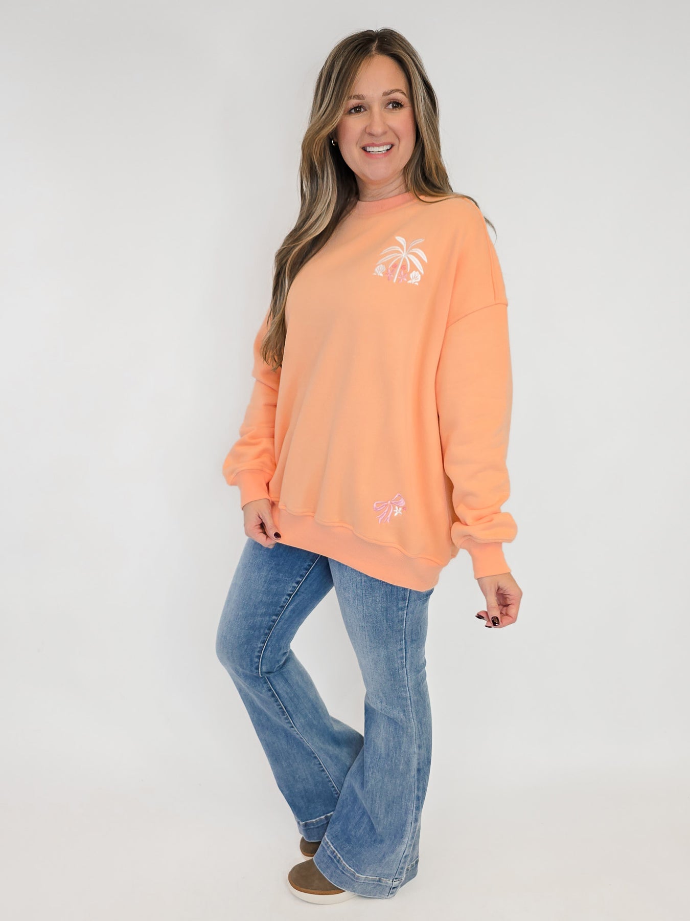 EMBROIDERED TROPICAL SWEATSHIRT - SHERBERT ORANGE