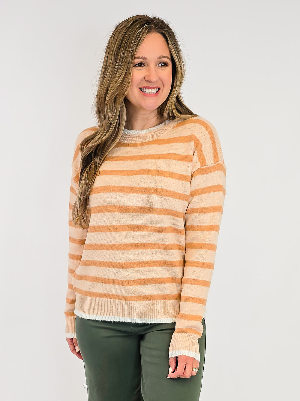 STRIPED COLOR CONTRAST DETAIL SWEATER - GOLDEN