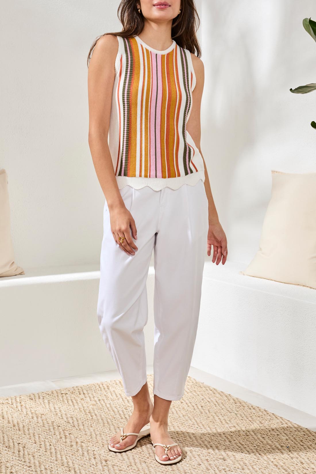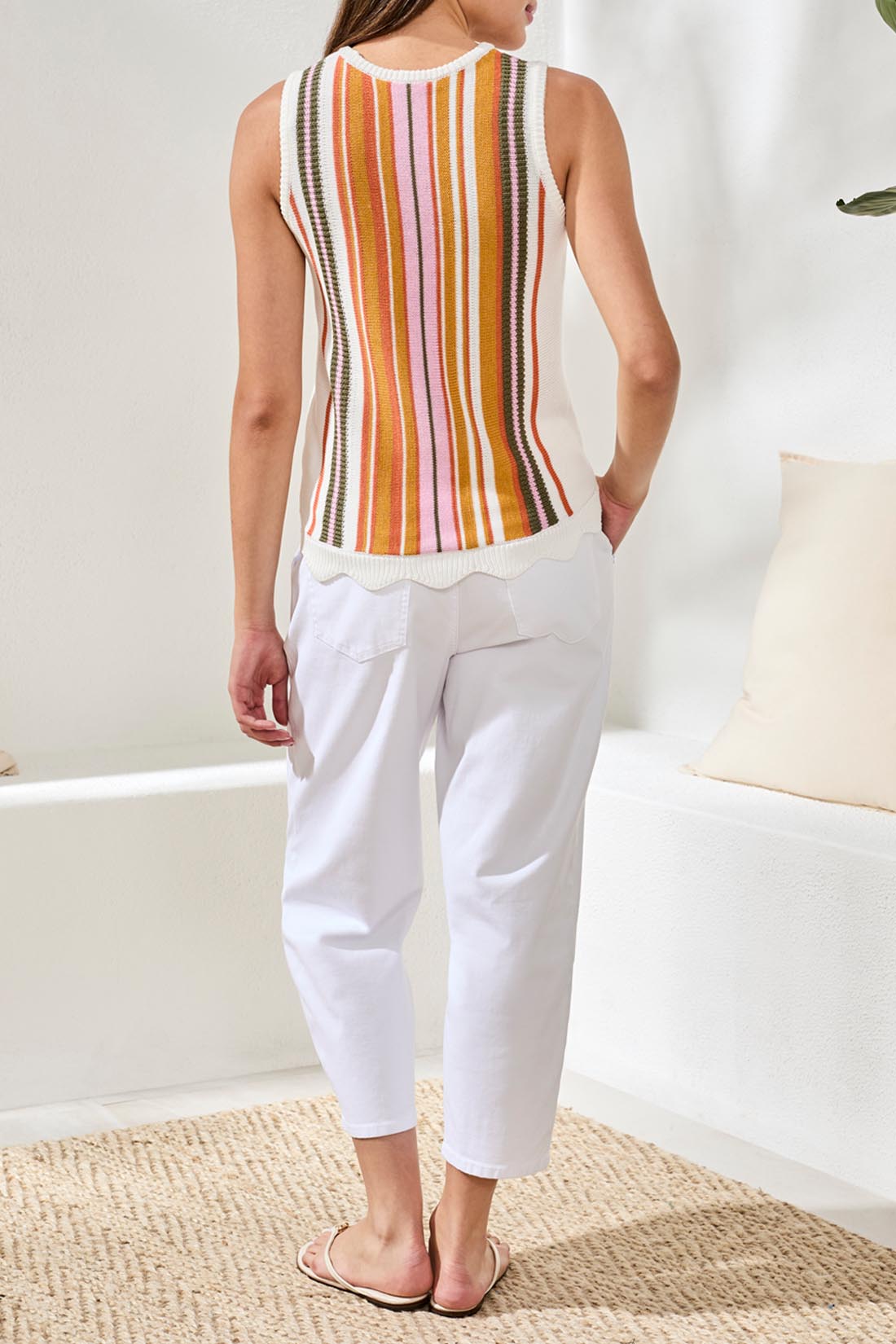 CREW NECK SLEEVELESS SWEATER - EGGSHELL MULTI