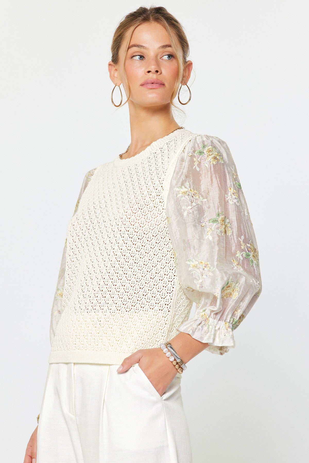3/4 SLEEVE SCALLOP EDGE OPEN SWEATER - IVORY