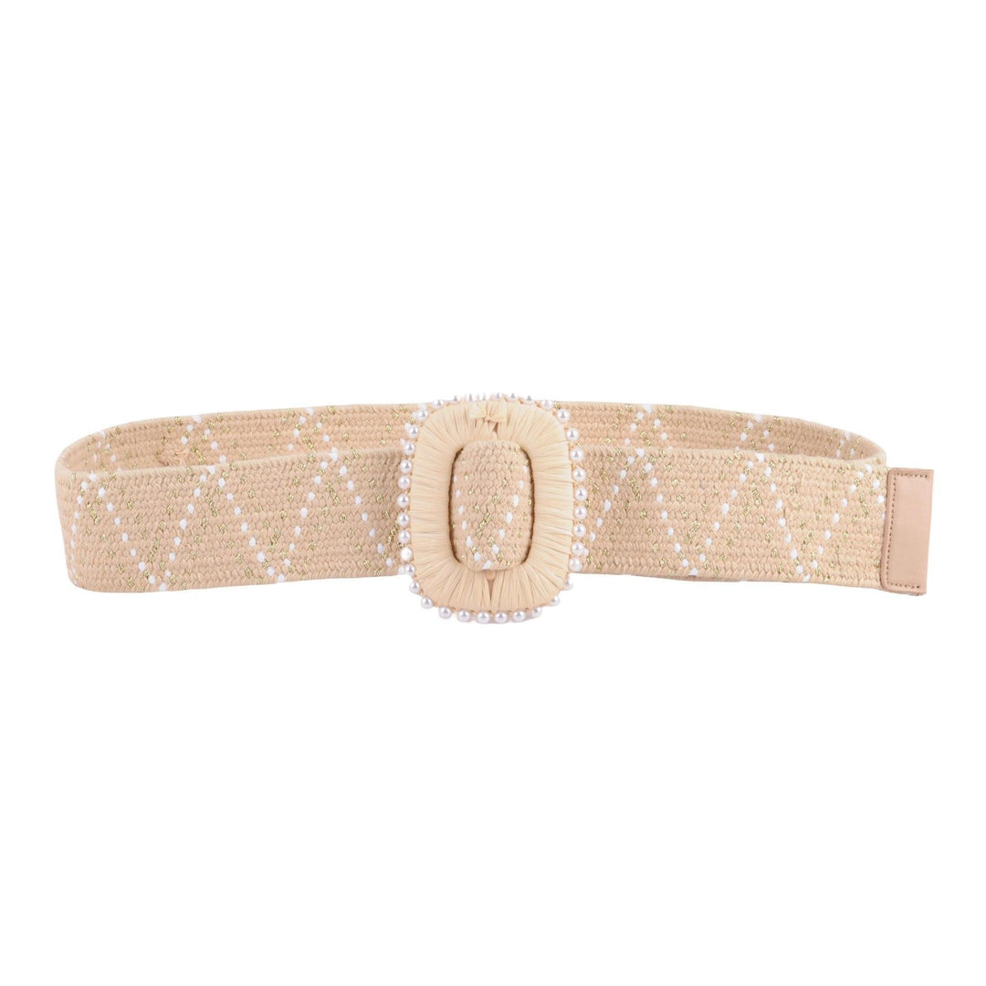 PEARLED BUCKLE STRETCH CHEVRON BELT - BEIGE