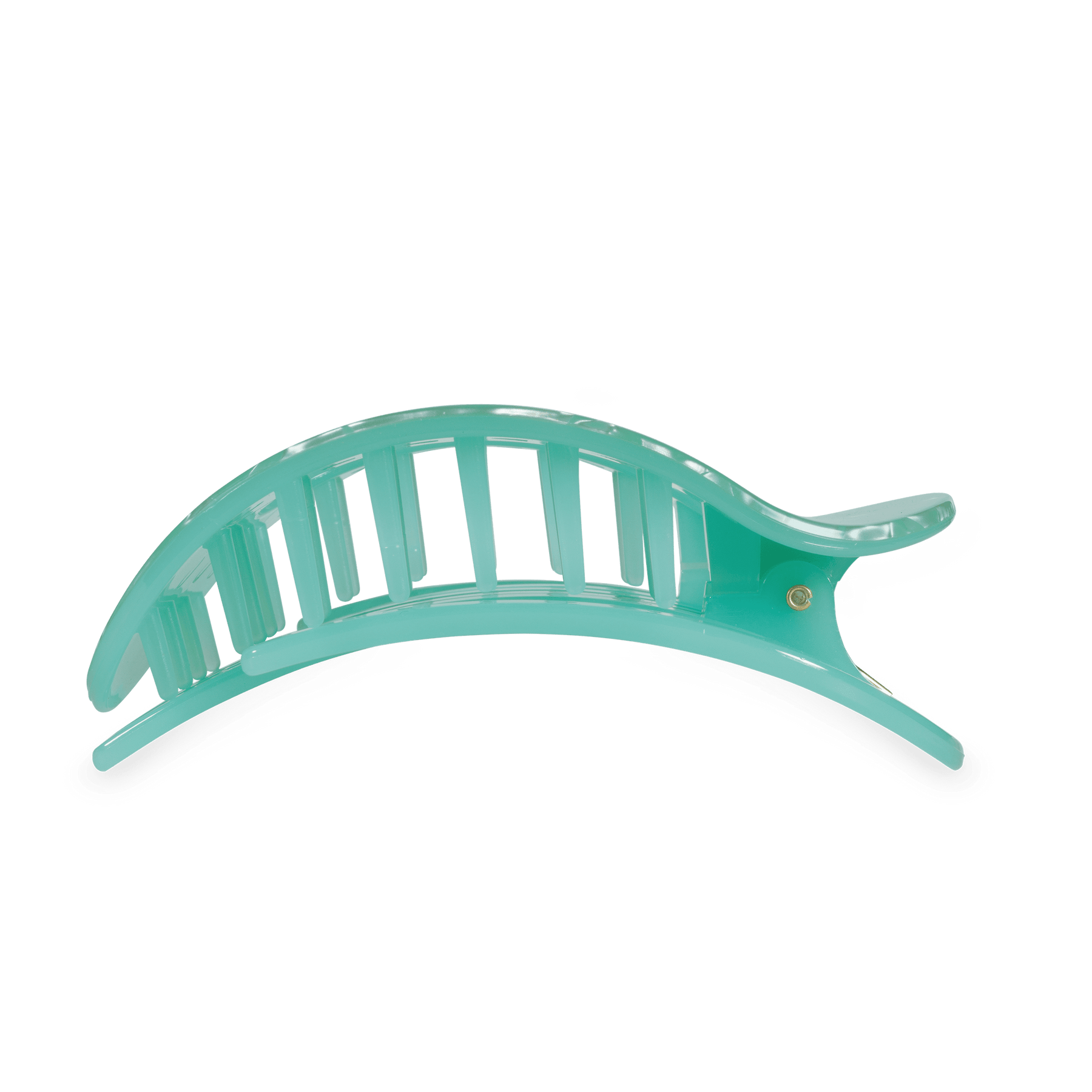 Lay flat and relax with the new TELETIES Spring Splash Large Flat Round Hair Clip in Green. This hair clip is designed to allow you to lay back flat, do yoga, or sit comfortably in a seat with a headrest, and it is made with the same material that is nearly unbreakable.