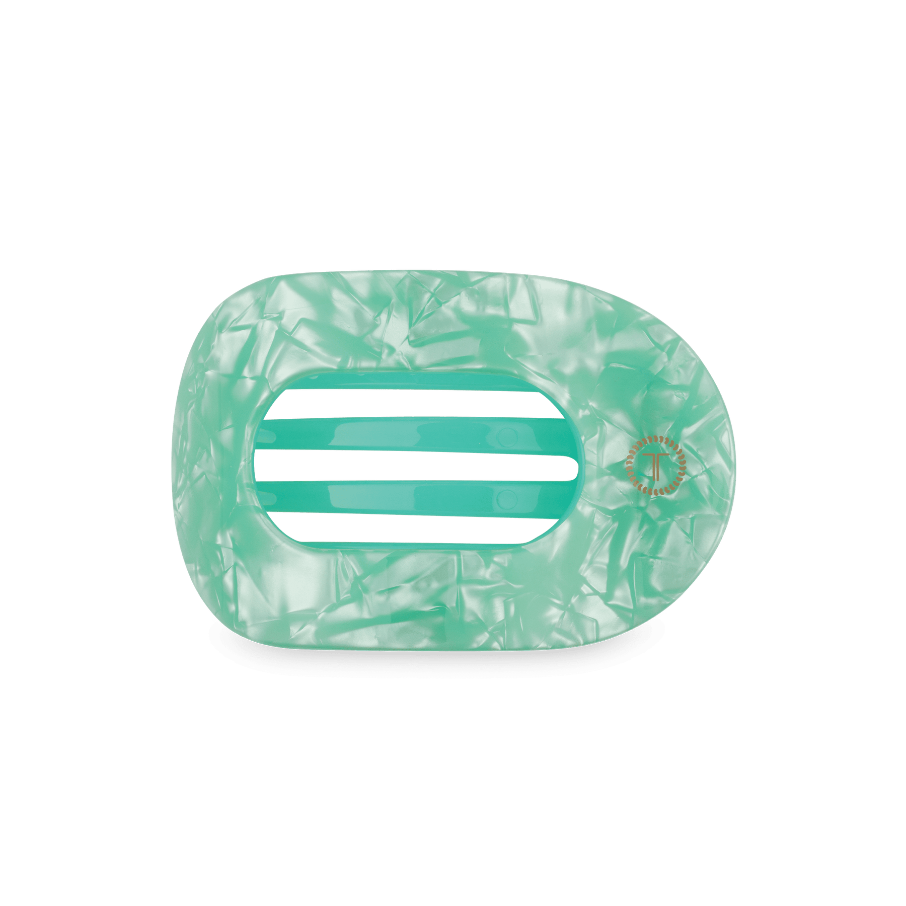 Lay flat and relax with the new TELETIES Spring Splash Medium Flat Round Hair Clip in Green. This hair clip is designed to allow you to lay back flat, do yoga, or sit comfortably in a seat with a headrest, and it is made with the same material that is nearly unbreakable.